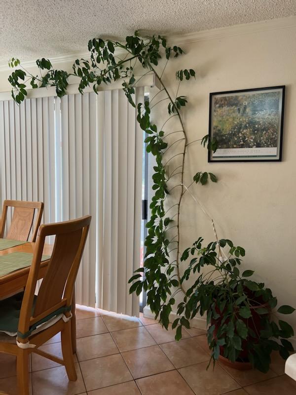 To our surprise, after thirty years, the plant started to grow in different directions. In four months, it developed like never before. There was a particular branch that started to grow down, towards the floor. It was getting so big, that it was getting in the way. One day in January 2020, I decided to redirect the branch. I bent it carefully, and tied it to another section of the plant. After three weeks, I was not only surprised, but amazed at the growth of the plant (picture 2).
