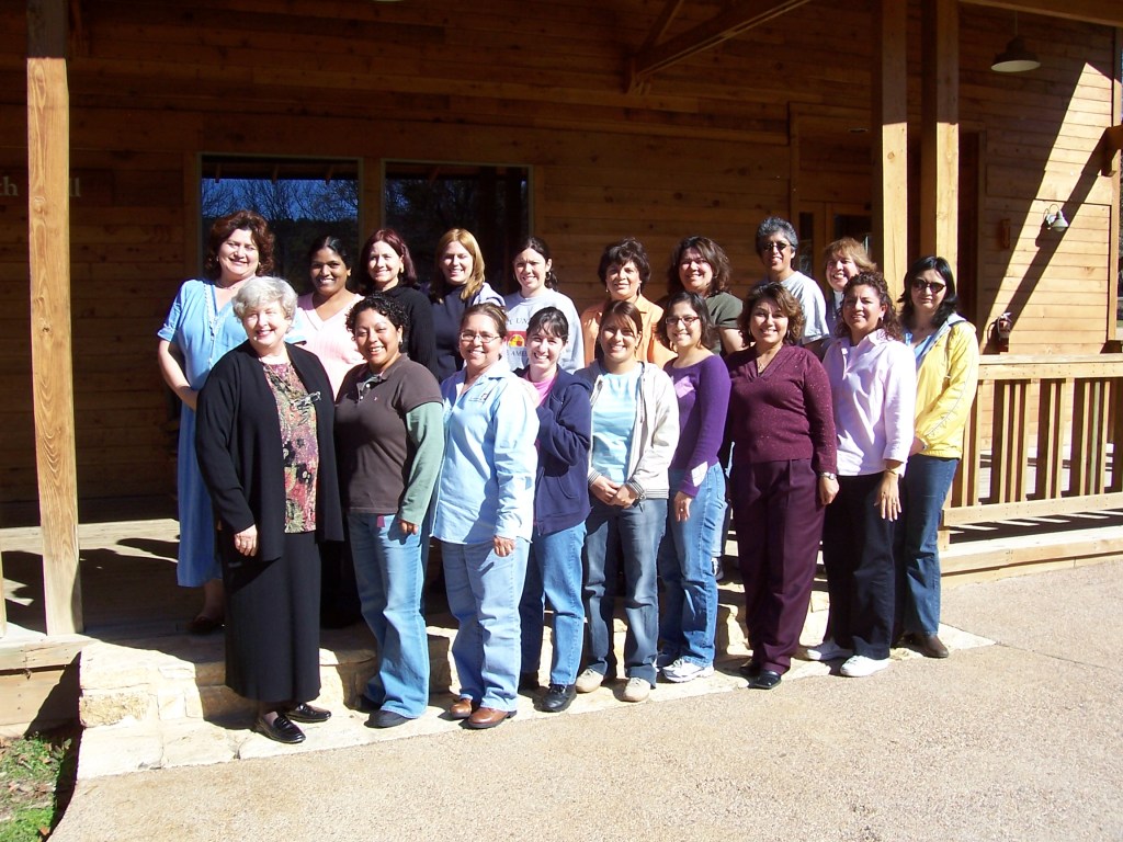 Una particularidad de esta clase del período de enero fue que, junto con las estudiantes de BUA que tomaban el curso de liderazgo para obtener créditos universitarios, también se invitó a inscribirse a mujeres seleccionadas de la comunidad. Estas mujeres eran líderes de la iglesia y del estado. Juntas, participaron y estudiaron en un curso intensivo de una semana (de 9:00 am a 9:00 pm). El grupo docente estaba compuesto por profesoras de BUA y mujeres líderes a nivel estatal y nacional. Otra característica singular fue que el curso se impartió en el Campamento Buckner, cerca de Marble Falls, Texas. Esto se pudo lograr con la ayuda, nuevamente, del Dr. Albert Reyes, quien para entonces había empezado a servir como presidente de Buckner Children and Family Services. Queríamos crear un entorno donde las estudiantes pudieran conectarse entre sí sin sus responsabilidades domésticas y donde pudieran concentrarse en aprender, desarrollar amistades y relaciones y descansar en un ambiente de campamento.